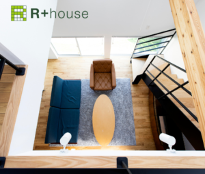 2階の窓から光を採りこむことで外からの視線を気にせずに快適に過ごせる空間を作り出しました。吹き抜けになっているため、開放的な明るいリビングとなっています。また、キッチンから家中が見渡せるので、家事をしながらご家族の様子を確認することができます。