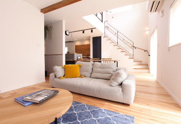 ビルトインガレージのある大屋根の家は、明るく開放的な室内空間が縦横につながります。幅広の無垢板、塗り壁など、自然素材にこだわりました。ガレージや大型バルコニー、2階の和室など特徴ある間取りをぜひご観覧ください。