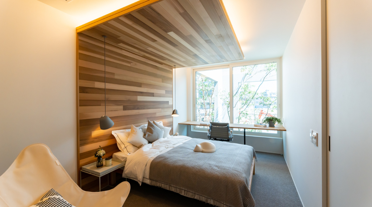 カウンターからは中庭が見える設計になっており、自然を感じながら読書やテレワーク・調べものなどをすることができる贅沢な自分だけの空間です。