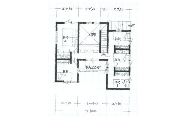また、子ども部屋のある2階へ続く階段を吹抜けのあるリビングに配置して、常にリビングを中心に家族が繋がる間取りが実現しました。階段をのぼると、吹き抜け部分の窓から差し込む光を楽しみながら読書や勉強などができるように…とワークスペースがお出迎え。リビングにいる家族を身近に感じることのできる空間です。