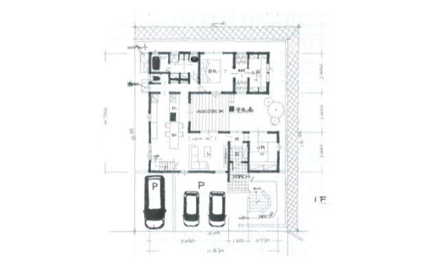 車を3台駐車できるスペースを確保した、スタイリッシュでオシャレなデザインのお家。