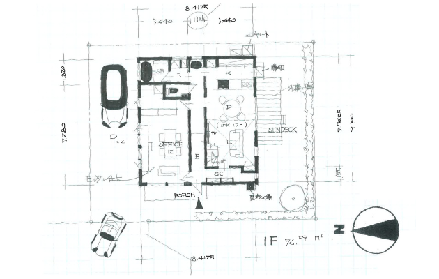 LDKの目の前にはサンデッキのあるお庭を設けて、仕事の時間と家族との時間のメリハリを付けれる間取りにしています。