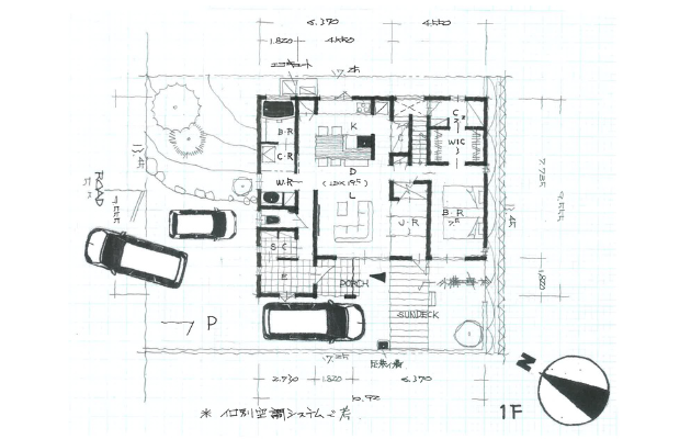 道路に面したお庭以外にリビングの目の前にサンデッキを取り入れ、お家の中からもお庭を楽しめます。