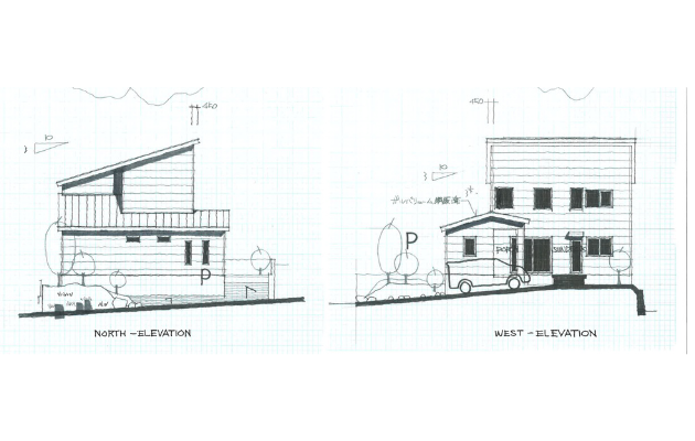 高低差のある土地を活かして、植栽で緑豊かなお庭を楽しむお家です。