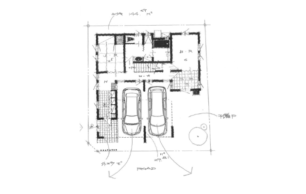 道路に面した土地だからこそ外からの目線にも配慮し、広いベランダ付きの2階を生活の中心とした間取りで、暮らしやすさをデザイン力でカタチにしました。
